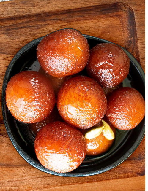 Soft, melt-in-the-mouth milk dumplings soaked in warm saffron-cardamom sugar syrup — a timeless Indian classic.