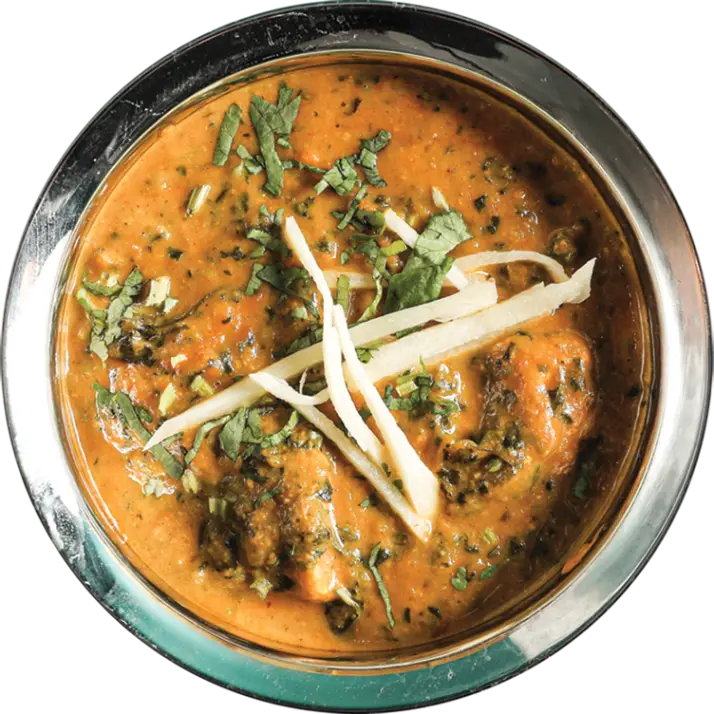 A savoury curry infused with fresh fenugreek leaves for a deep, earthy aroma and slightly bitter finish.