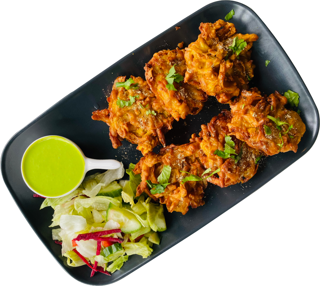 Thinly sliced onions coated in spiced gram-flour batter, deep-fried for a crunchy finish.
