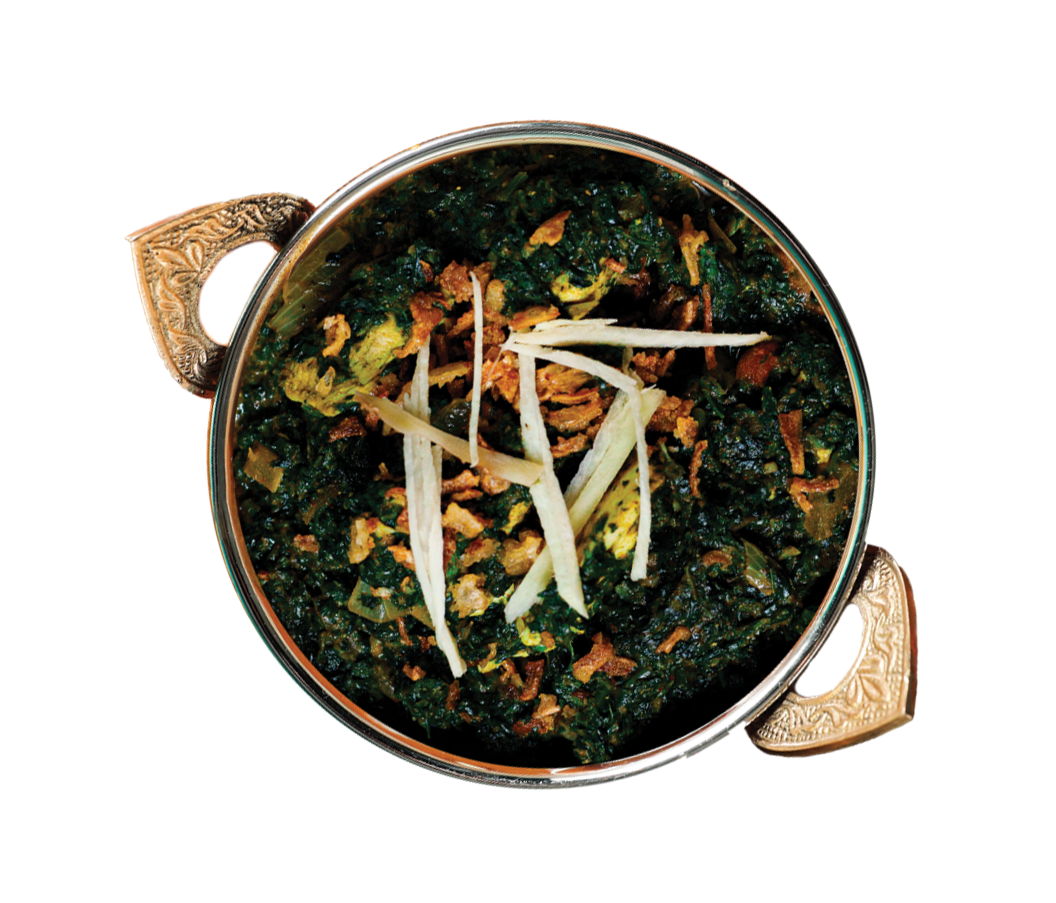 A smooth spinach-based curry cooked with garlic, ginger, and warm Indian spices — earthy and nutritious.
