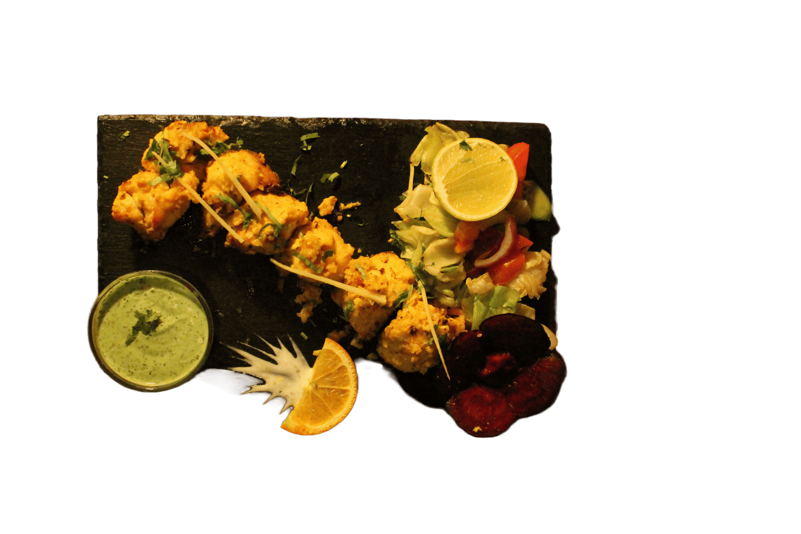 Chunks of salmon coated in mustard-infused tikka masala, grilled to buttery perfection.